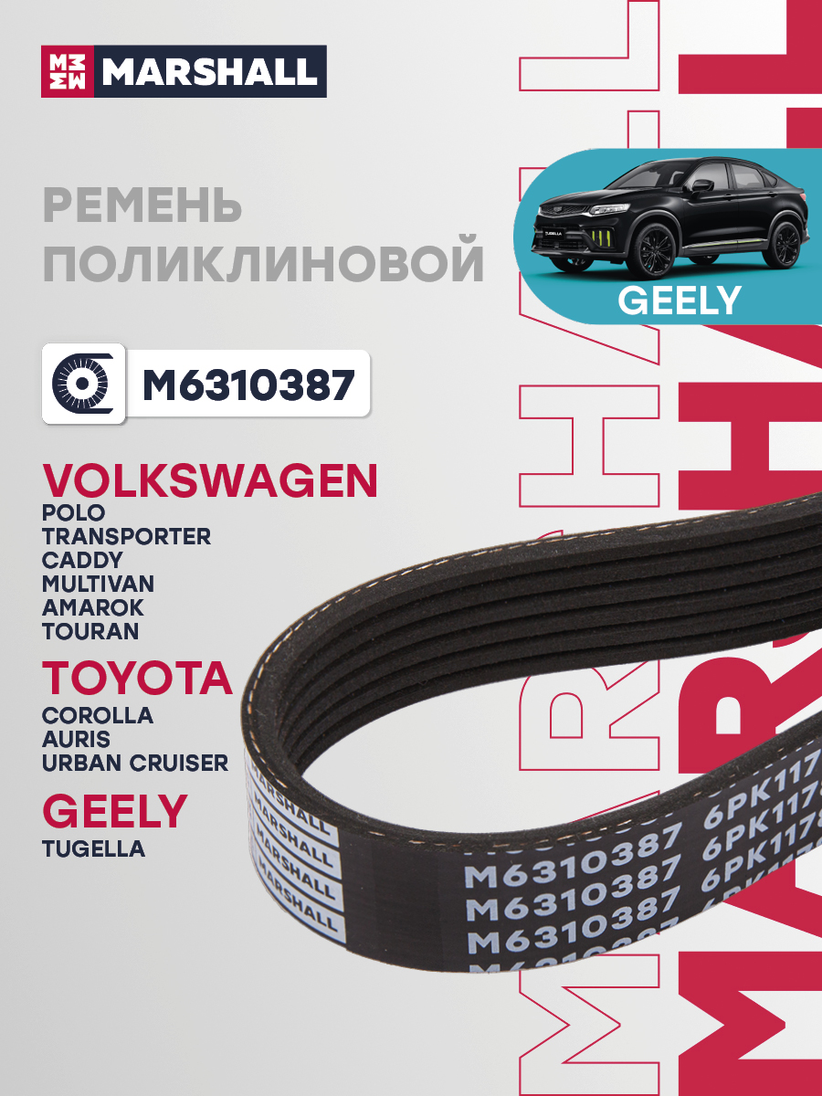 Ремень поликлиновой 6PK1185 GEELY MONJARO 21-, TUGELLA 19-; MG ZS 01-; TOYOTA COROLLA 06-