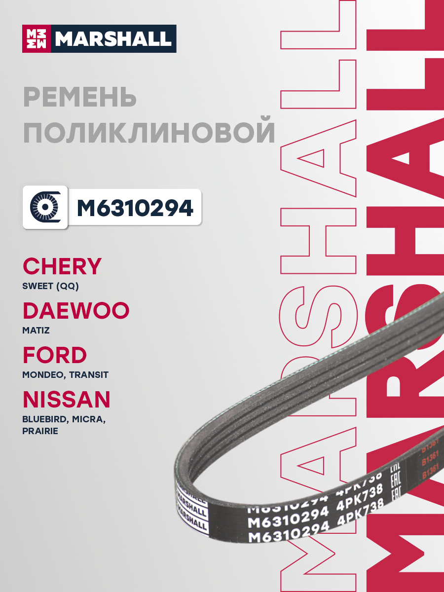 Ремень поликлиновой 4PK738 CHERY SWEET (QQ) 03-; DAEWOO MATIZ 98-; FORD TRANSIT 00-