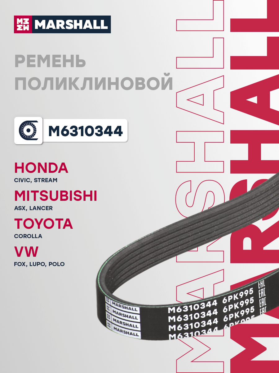 Ремень поликлиновой 6PK995 MITSUBISHI LANCER 07-; TOYOTA COROLLA 95-; VOLKSWAGEN POLO 01-