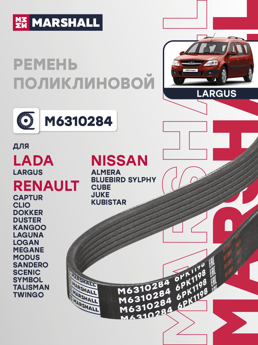 Ремень поликлиновой 6PK1198 GAC GS8 16-; LADA LARGUS 12-; RENAULT DUSTER 10-, LOGAN 04-