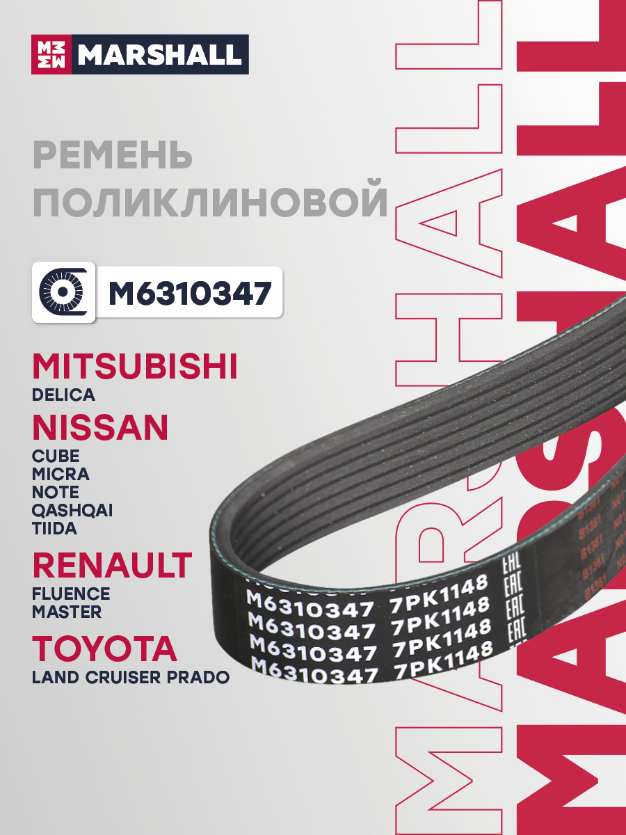 Ремень поликлиновой 7PK1148 NISSAN QASHQAI 06-, TIIDA 04-; TOYOTA LAND CRUISER PRADO 02-