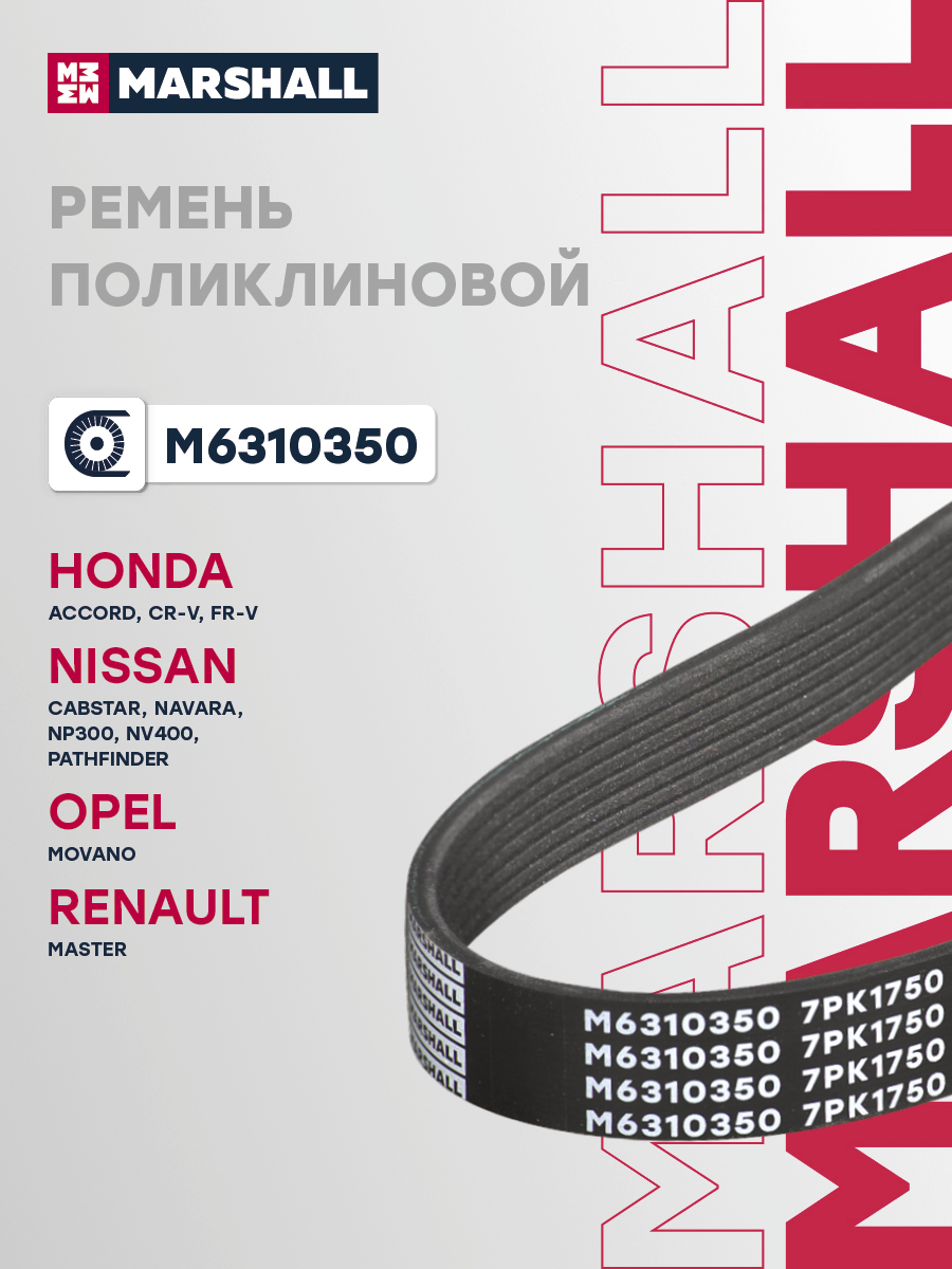 Ремень поликлиновой 7PK1750 HONDA ACCORD 02-, CR-V 06-; NISSAN PATHFINDER 04-
