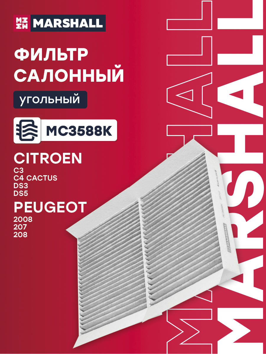 Фильтр салонный угольный PEUGEOT 207 06-, 208 12-, 2008 13-; CITROEN C3 09-, DS3 09-