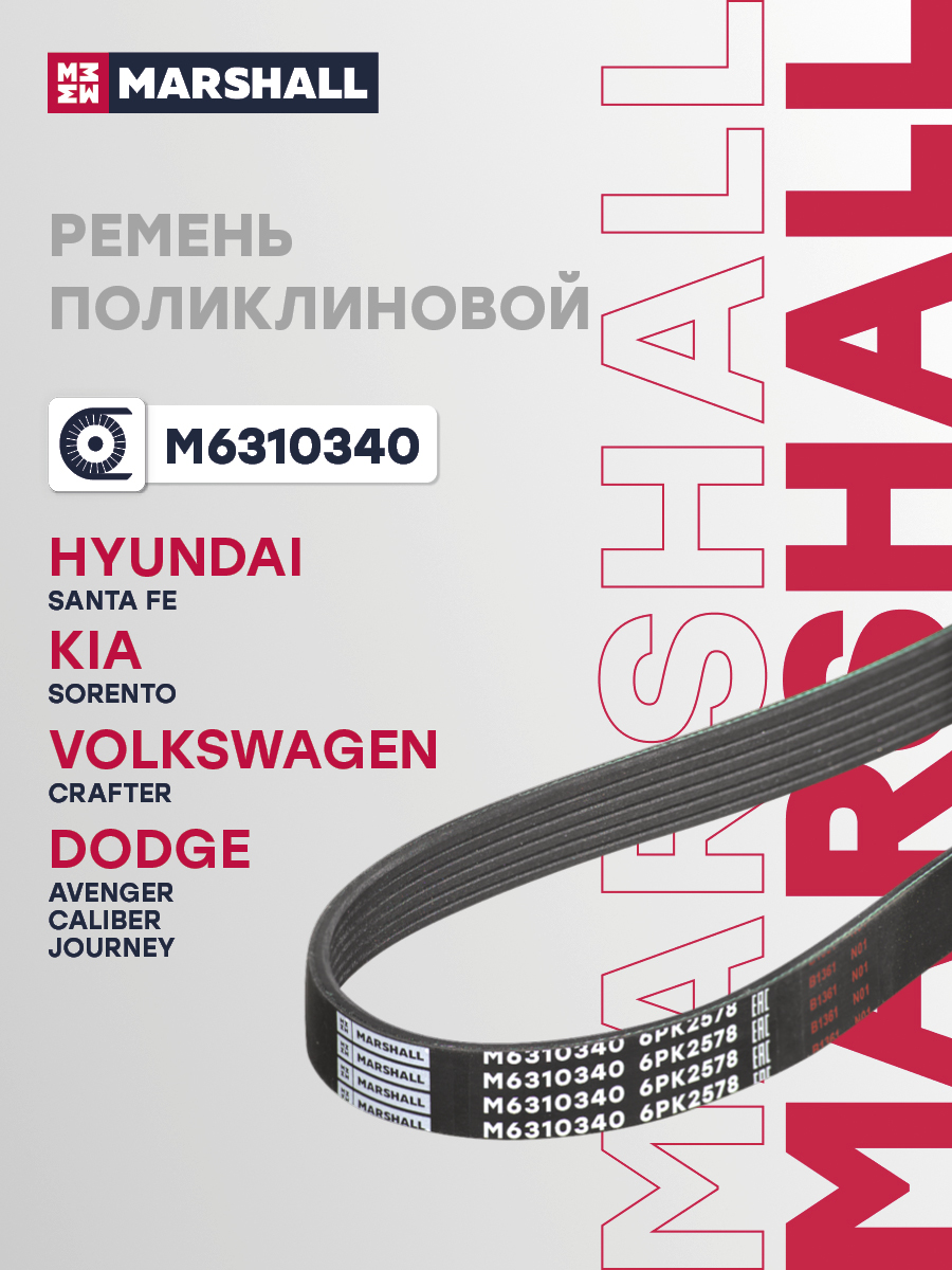 Ремень поликлиновой 6PK2578 HYUNDAI SANTA FE 05-; KIA SORENTO 09-; VOLKSWAGEN CRAFTER 06-