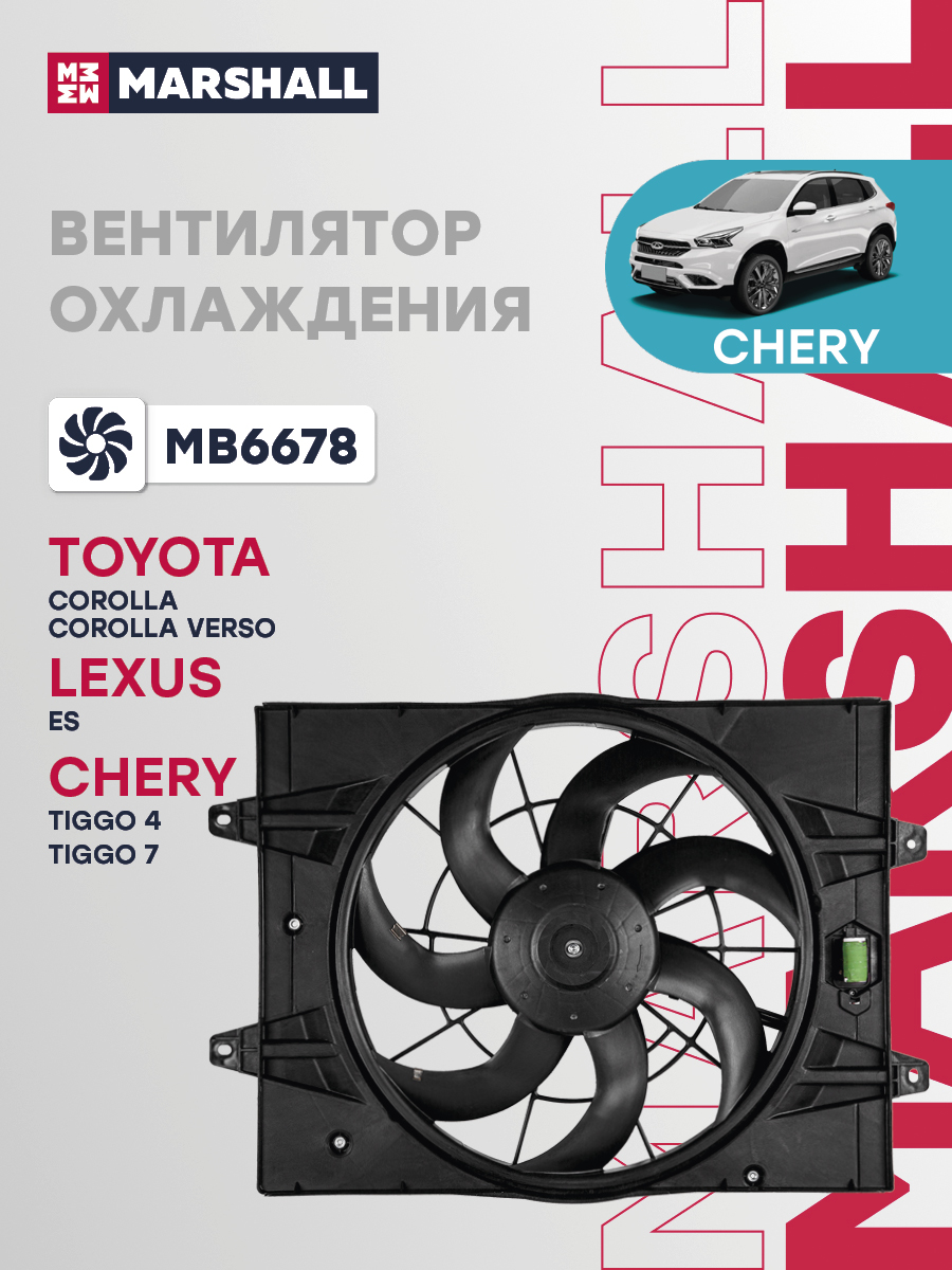 Вентилятор охлаждения CHERY TIGGO 4 17-, TIGGO 7 16-; EXEED LX 19-; TOYOTA COROLLA 00-