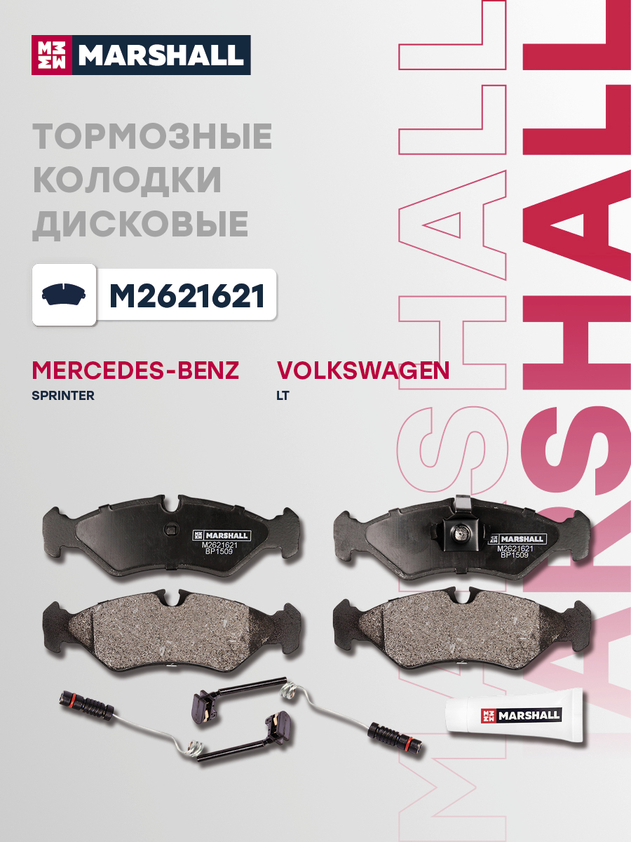 В комплект входит 4 колодки дисковые, 1 смазка, 2 датчика износа