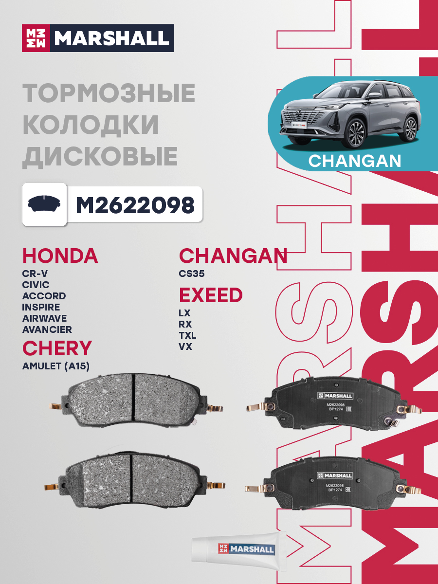 В комплект входит 4 колодки дисковые, 1 смазка, 4 дополнительные металлические противоскрипные пластины