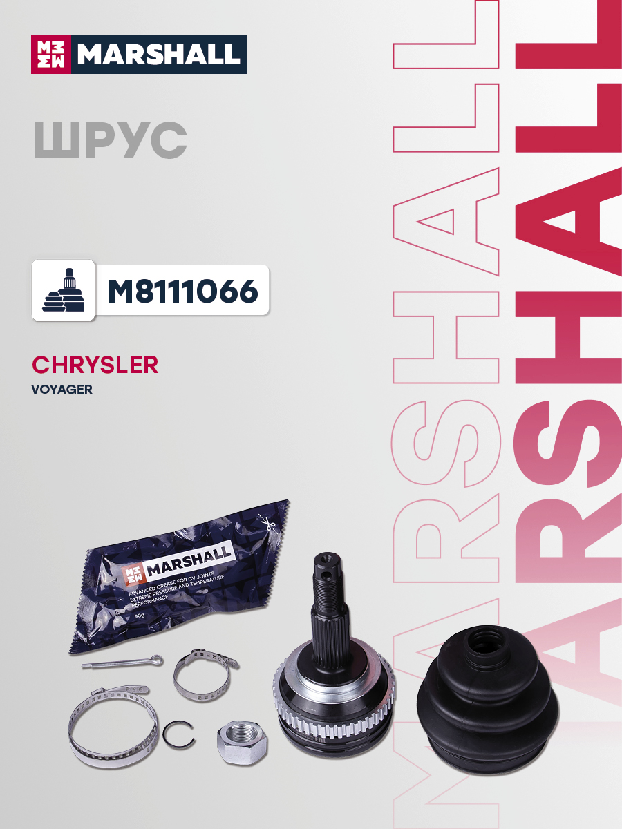 В комплект входит 1 шрус, 1 пыльник, 1 смазка, 1 гайка, 2 хомута, 1 стопорное кольцо, 1 шплинт