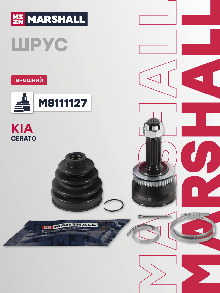 В комплект входит 1 шрус, 1 пыльник, 1 смазка, 1 гайка, 2 хомута, 1 стопорное кольцо, 1 шплинт
